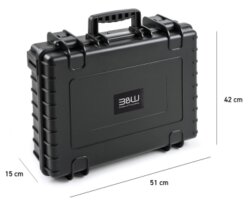 B+W OUTDOOR CASE type 3000 Binnenmaten : 330 x 235 x 150 mm. Buitenmaten : 365 x 295 x 170 mm.