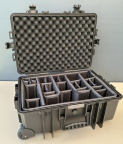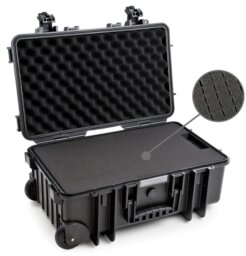 B+W CASE type 6600 met trolley Binnenmaten : 500 x 285 x 185 mm. Buitenmaten : 550 x 350 x 225 mm.
