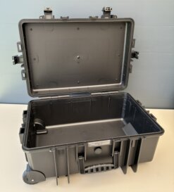 B+W CASE type 6700 met trolley Binnenmaten : 535 x 360 x 225 mm. Buitenmaten : 610 x 430 x 265 mm.